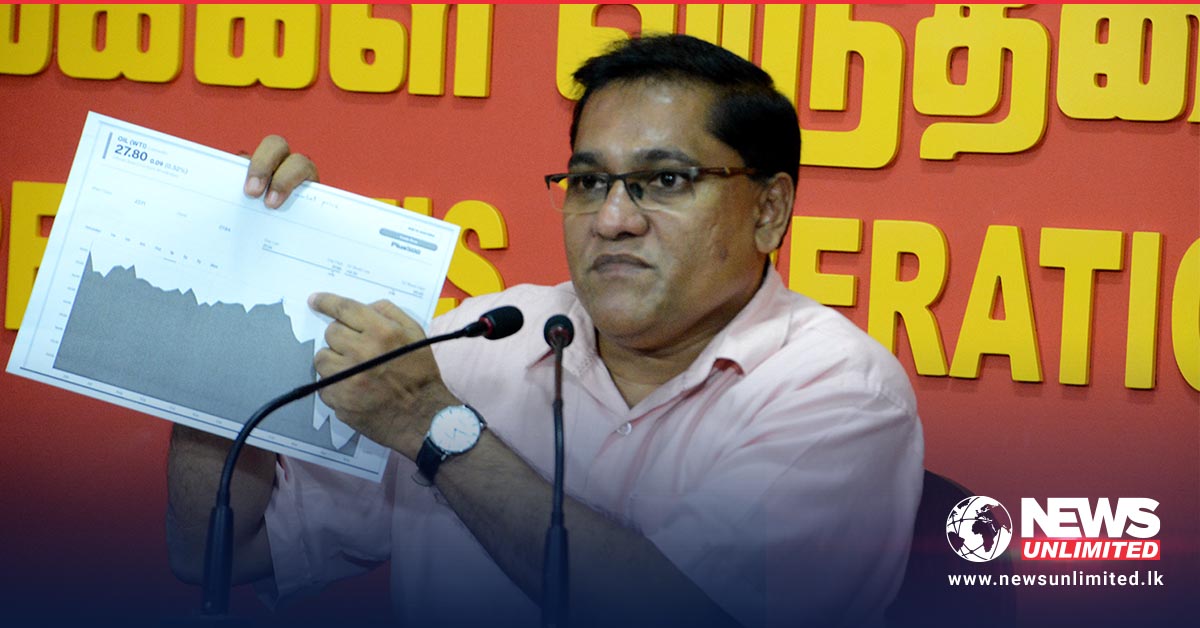 ලෝක වෙළෙද පොළේ තෙල් මිල සැලකිය යුතු අන්දමින් පහත වැටී ඇති හෙයින් එම මිලට අනුව මෙරට පෙට්රල් ලීටරයක් රු. 55ටත්, ඩීසල් ලීටරයක් රුු. 42ටත්, භූමිතෙල් ලීටරයක් රු. 28ටත් ලබාදිය හැකි බවට ජනතා විමුක්ති පෙරමුණ අද දින චෝදනා කළේය.
