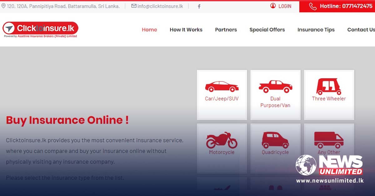 කාලයට අවහ්ය පරිදි වෙනස්වීමේ අවශ්යතාව හදුනාගනිමින් ඇසට්ලයින් ඉන්ෂුවරන්ස් බ්රෝකර්ස් (ප්රයිවට්) ලිමිටඩ් තම සේවා පහසුවෙන් පාර්භෝගිකයාට ලබා දීමේ තවත් පිම්මක් සනිටුහන් කරමින් www.clicktoinsure.lk හරහා අන්තර්ජාලය ඔස්සේ සේවා ලබා දීමේ ලොවට පිවිසෙනු ලබයි. මෙම නව වෙබ් අඩවිය ඔස්සේ ක්ලික් කළ සැනින් ඔබගේ රක්ෂණයට අදාළව රක්ෂණ සමාගම්වලින් ලබා දෙන ඇස්තමේන්තු පරීක්ෂා කළ හැකි අතර අවසානයේදී ඔබ කැමති රක්ෂණ සමාගම තෝරාගත හැකි අතර රක්ෂණ සහතිකය ලැබෙන තුරු එවලේම තාවකාලික රක්ෂණ සහිතකය (cover note) ලබා ගැනීමේ හැකියාව ඇත. මෙහිදී ඒ සදහා අවශ්ය ලියකියවිලිවල පළමු පිටපත් අවශ්ය නොවන අතර ඒවායේ පිටපත් වෙඩ් අඩවිය ඔස්සේ idiripath kala හැකිය. එසේම පාරිභෝගිකයන්ගේ මින් පෙර කරන ලද ගනුදෙනුවලට අදාළ වාර්තා පරීක්ෂා කිරීමටද මෙම වෙඩ් අඩවියේ පහසුකම් සලසා ඇති අතර එම ගනුදෙනු වාර්තා මෙන්ම ඇස්තමේන්තු, තාවකාලික රක්ෂණ සහතික සහ රිසිට් පත් වැනි දෑ බාගත කිරීමේ හැකියාද ඇත.