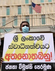 ඇමෙරිකානු රාජ්ය ලේකම් මයික් පොම්පියෝ මහතාගේ ශ්රී ලංකා සංචාරයට එරෙහිව ජනතා විමුක්ති පෙරමුණ විසින් අද දින කොළඹ පිහිටි ඇමෙරිකානු තානාපති කාර්යාලය ඉදිරිපිටදී නිහඩ විරෝධතාවක් පවත්වන ලදී.