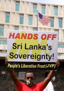 ඊට පරස්පර ලෙස ඇ.එ.ජ. විසින් ශ්රී ලංකාව තමන්ගේ බලපෑමේ සීමාව තුළට ගැනීමට දැඩි ලෙස උත්සාහ කර ඇති අතර එමගින් ශ්රී ලංකාව අනවශ්ය හා වියදම් සහගත ගෝලීය හා කලාපීය බල අරගලයක් තුළට ඇද දමා ඇත. ඇ.එ.ජ. තමන්ගේ වුවමනාකම් ආරක්ෂා කිරීමේදී සියලු ප්රජාතන්ත්රවාදී හා ජාත්යන්තර මූලධර්ම උල්ලංඝනය කිරීමට සූදානම් බව අපි හොඳින්ම දනිමු. එ.ජ. විසින් මැතිවරණවලට මැදිහත්වීම, ප්රජාතන්ත්රවාදීව බලයට පත් නායකයින් බලයෙන් පහකිරීම, හමුදා ආඥාදායකයින්ට හා ත්රස්ත සංවිධානයන්ට හමුදා හා ආර්ථික ආධාර සම්පාදනය කිරීම මගින් නිදහස් රටවලට අයුතු බලපෑම් කිරීමේ නිදසුන් ගණනාවකින් ලෝක ඉතිහාසය ජරාජීර්ණ වී තිබේ.