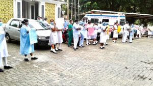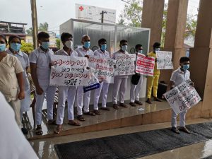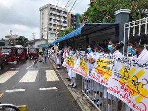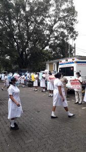 කෑගල්ල මහ රෝහල, කළුතර නාගොඩ මහ රෝහල, කුලියාපිටිය ශික්ෂණ රෝහල, මහනුවර ජාතික රෝහල, කොළඹ ජාතික රෝහල, දකුණු කොළඹ ශික්ෂණ රෝහල (කළුබෝවිල) සහ නුවරඑළිය මහ රෝහල යන රෝහල් ඉදිරිපිට මෙම උද්ඝෝෂණ පවත්වන ලදී.