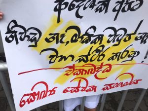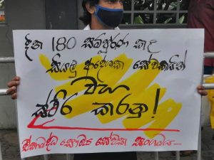 ආදේශක සෞඛ්ය කාර්යය සහයක සේවකයින් දින 180 සම්පූර්ණ කර මා 09 ක පමණ කාලයක් ගතව තිබුණද ඔවුන්ව ස්ථීර කිරීමට කිසිදු වැඩපිළිවෙළක් ආණ්ඩුව විසින් ගෙන නොතිබීම නිසා මෙම උද්ඝෝෂණ පවත්වන ලදී.