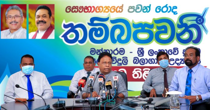 විදුලි බල උත්පාදනයේ අනාගත හැරවුම් ලකුණක් සනිටුහන් කරමින් මෙරට ස්ථාපිත කරන ලද තම්බපවනි සුළං විදුලිබලගාර උද්යානය දෙසැම්බර් 08 වැනිදා විවෘත කෙරෙන බව විදුලි බල අමාත්ය ඩලස් අලහප්පෙරුම මහතා පවසයි.