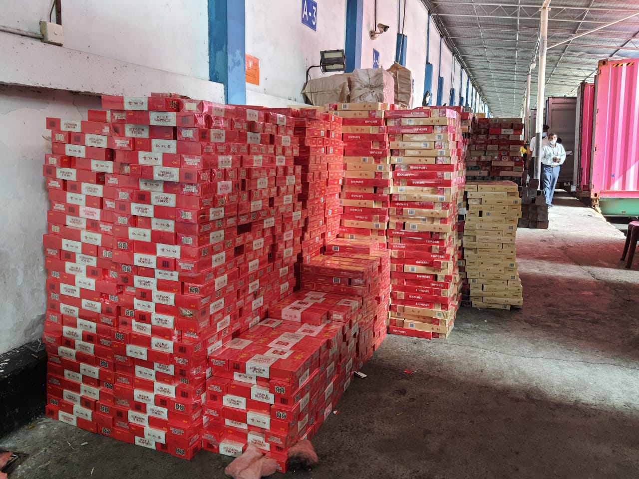 චීනයේ සිට නීති විරෝධීව මෙරටට ගෙන්වන ලද රුපියල් කෝටි 09කට අධික වටිනාකමින් යුත් දුම්වැටි තොගයක් ශ්රී ලංකා රේගු දෙපාර්තමේන්තු නිලධාරීන් විසින් අත්අඩංගුවට ගන්නා ලදී.
