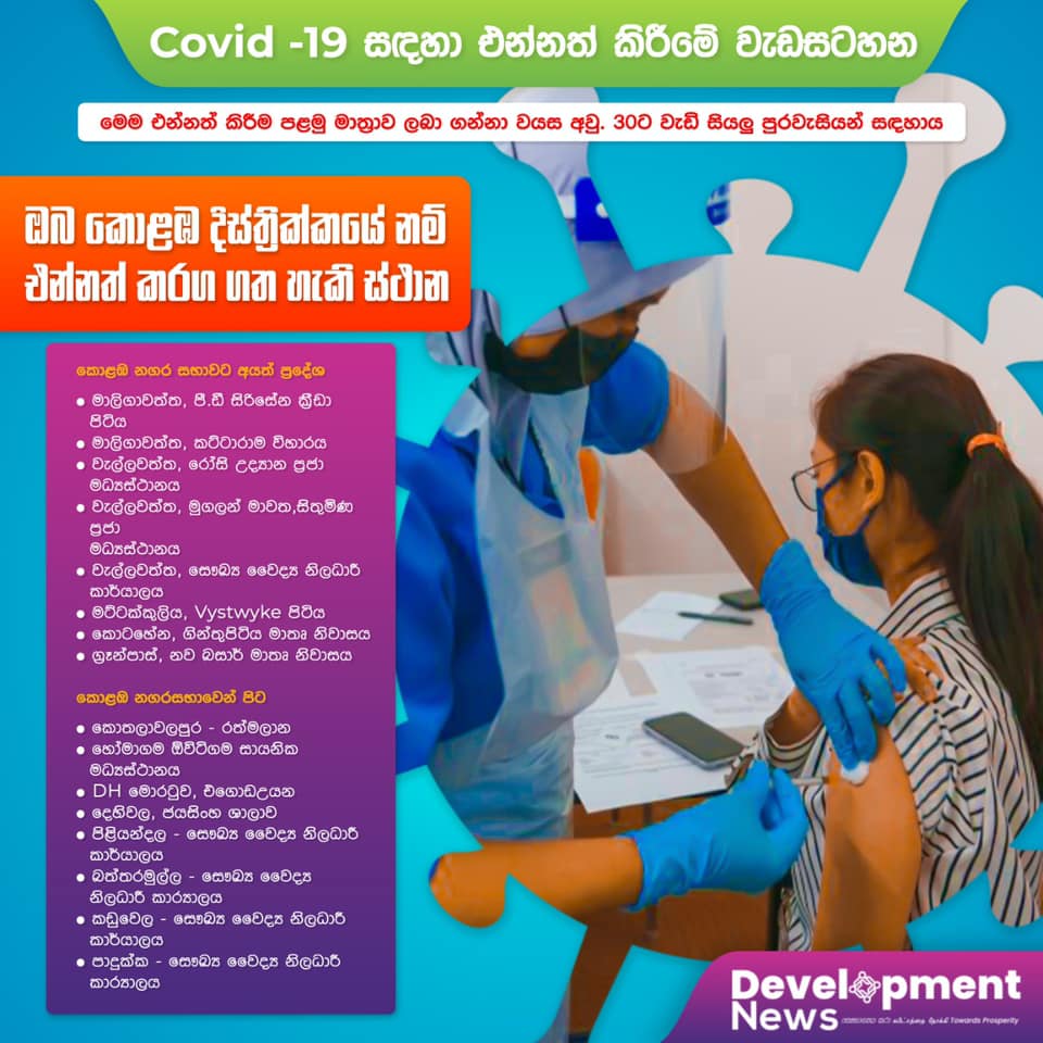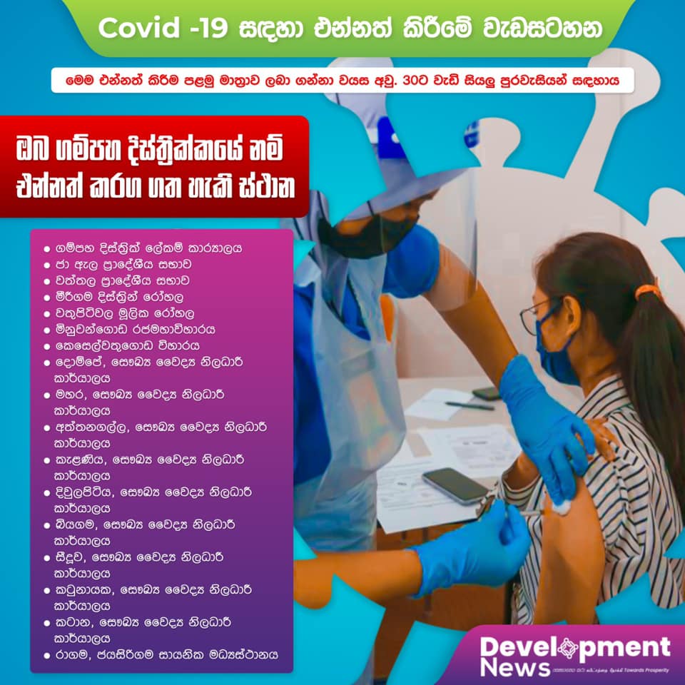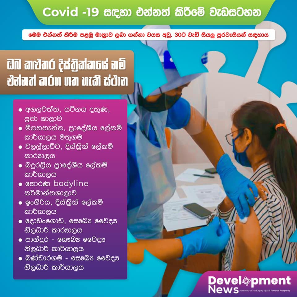 මේ වන විටත් රජය විසින් දැනුවත් කර ඇති පරිදි මහජනතාවට කොවිඩ් – 19 වැළැක්වීමේ එන්නත ලබාගත හැකි ස්ථාන ලබා දී ඇත.